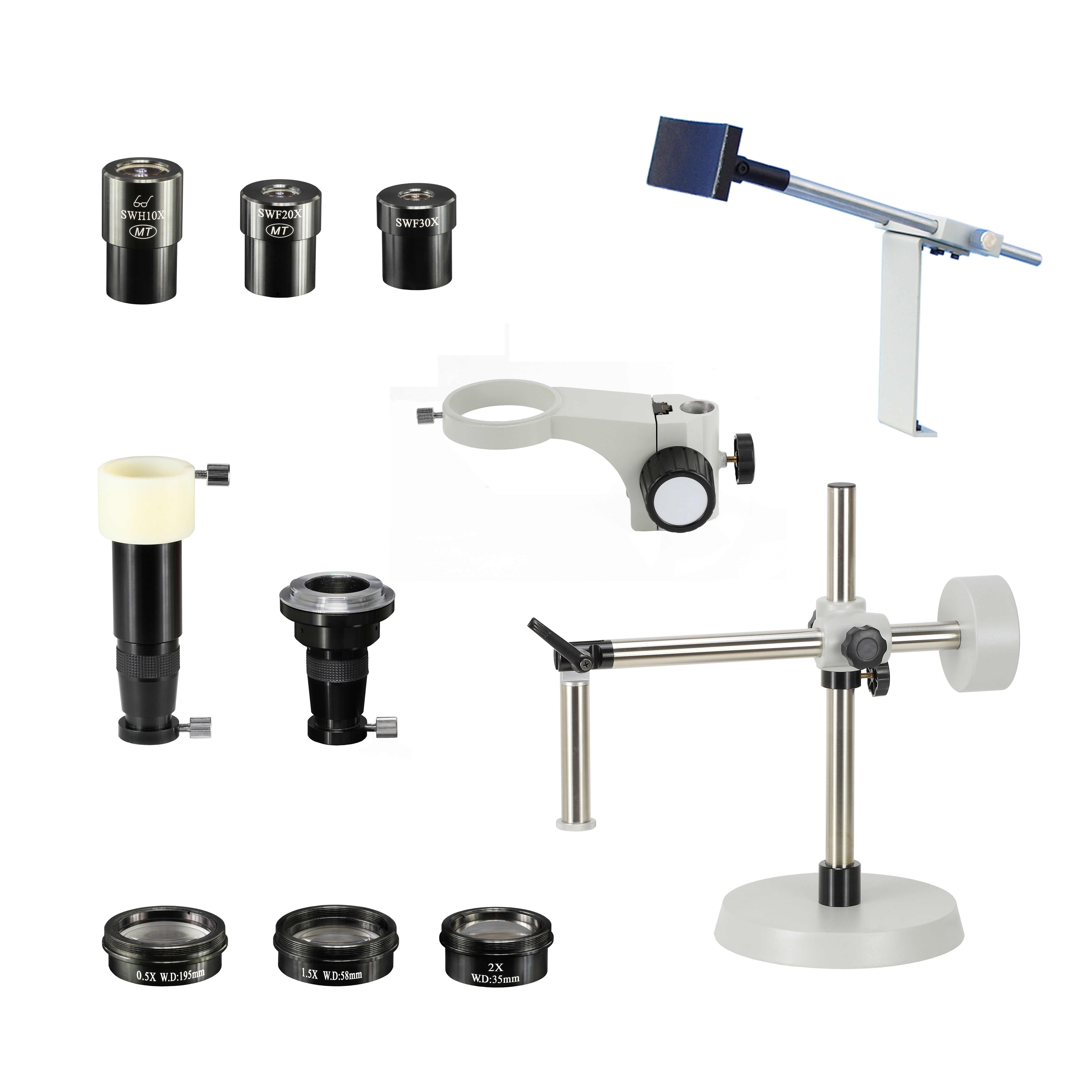 為滿足現(xiàn)代生物研究,半導體和其它科技工業(yè)領域不同場合的使用要求,體視顯微鏡按模塊化設計,有多種萬能支架,底座組,工業(yè)綁定用升降組,目鏡,測微目鏡,附加物鏡,攝影攝像、數(shù)碼照相裝置,機械載物臺等附件可供選擇。